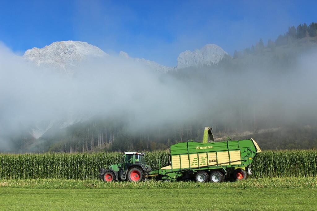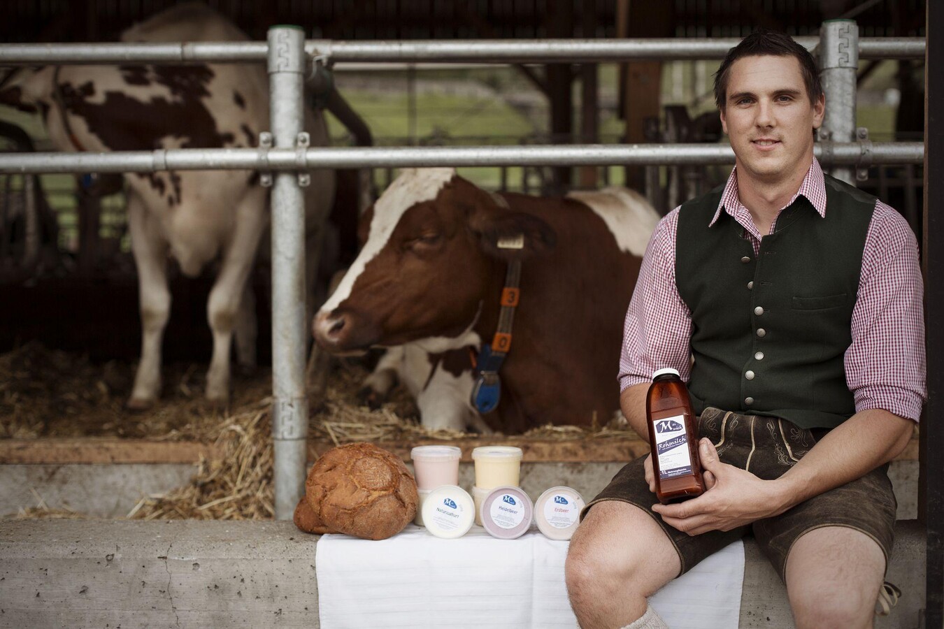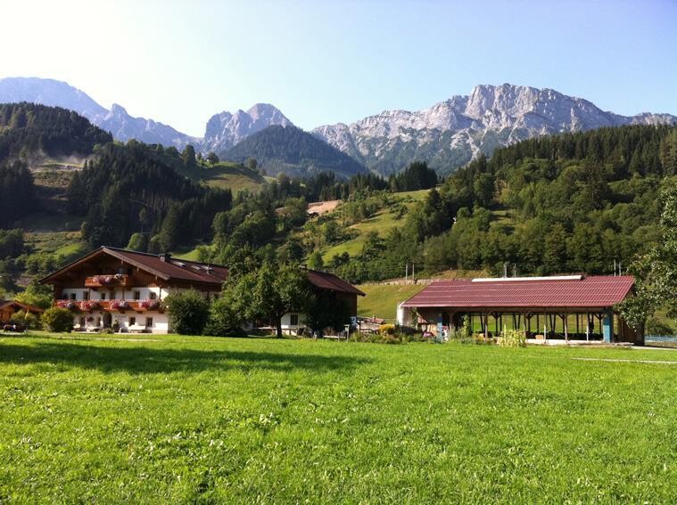 Stell dir einen Bauernhof vor, mit vielen Kühen und einer Weide. Der Hof liegt auf einem grünen Talboden, rundherum sind kleine und größere Wiesen, ein Getreidefeld und ein Kartoffelacker liegen direkt davor. Sieht man nach oben, kann man das wunderschöne Steinberg-Panorama dahinter erblicken, das den Bauernhof einrahmt.